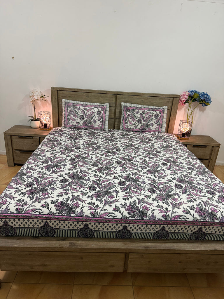 100% Cotton 3PCS 🌸 1 Bedsheet + 2 Pillow covers