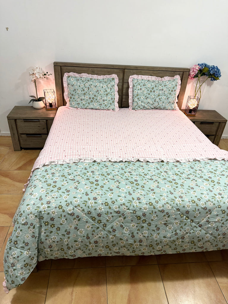 🟩Fitted Super king size Glacé Cotton Bedsheet( With Joint) + 2 pillow covers + 1 matching Comforter (Fiber Filling in Comforter)