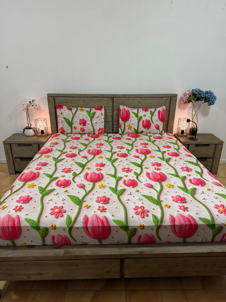 (Please note- Quilt or fitted sheet is not included. It’s 3PCS set- 1 flat Bedsheet + 2 Pillow Covers)