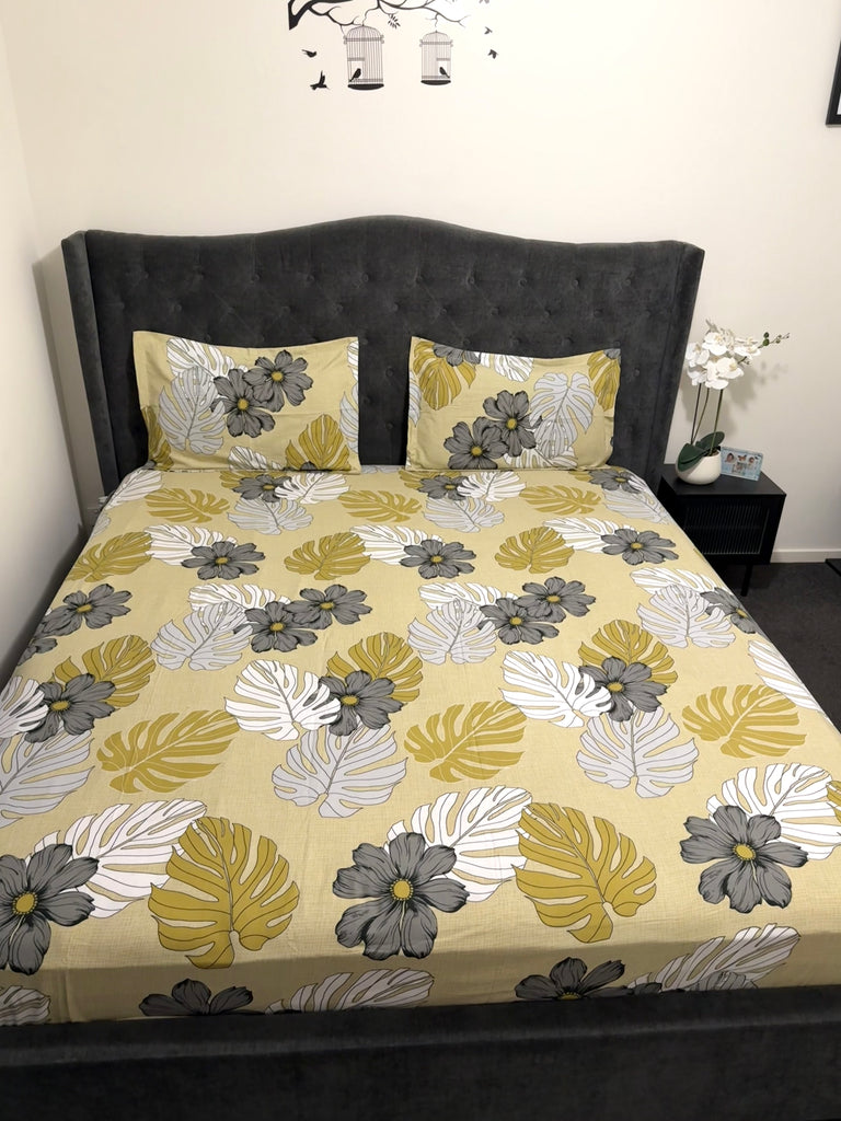 100% Glacé cotton 3PCS 🌸 1 Bedsheet + 2 Pillow covers