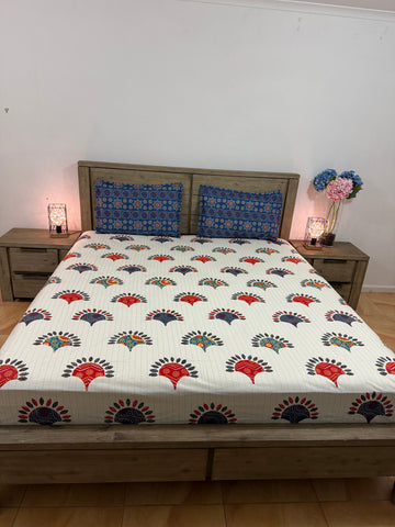 100% Cotton 3PCS 🌸 1 fitted Bedsheet + 2 Pillow covers