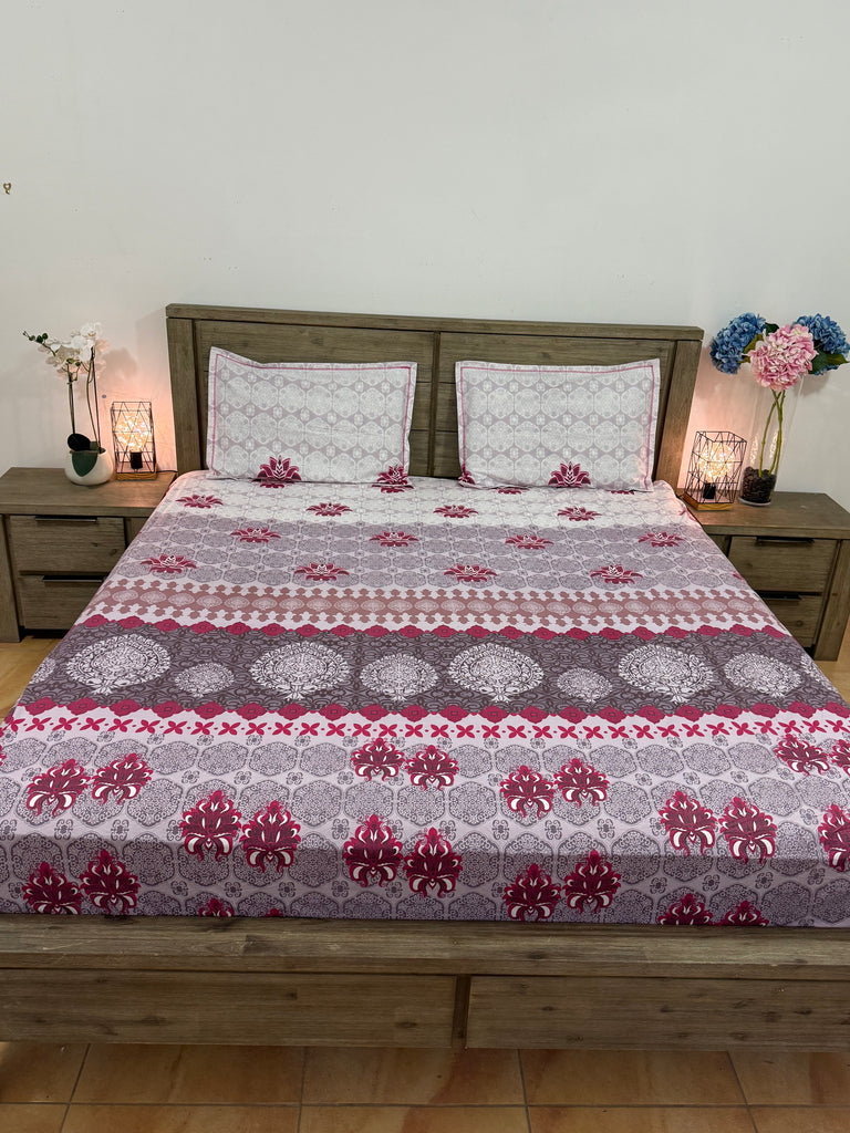 100% Cotton 3PCS 🌸 1 Bedsheet + 2 Pillow covers