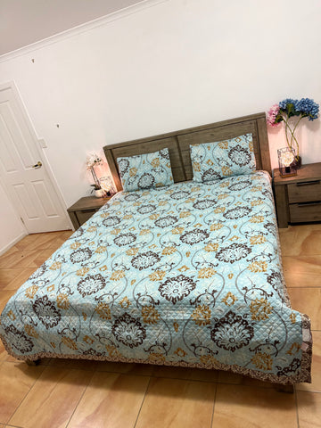 Description- A bed cover is a decorative top layer placed over your bedsheet and quilt to give your bed a neat, elegant look. It’s slightly thicker than a regular bedsheet, sometimes quilted, and perfect for protecting your bedding from dust while adding a touch of style.