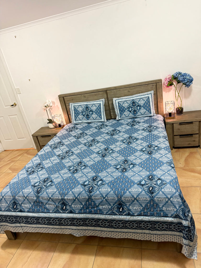 (Please note- Quilt or fitted sheet is not included. It’s 3PCS set- 1 Flat Bedsheet + 2 Pillow Covers)